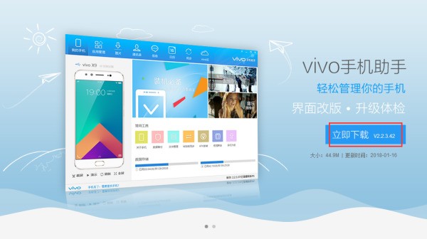 vivo手机助手可以进入vivo官网-服务-手机升级-任意选择一个机型-手机助手-点击“vivo手机助手”下载即可。
