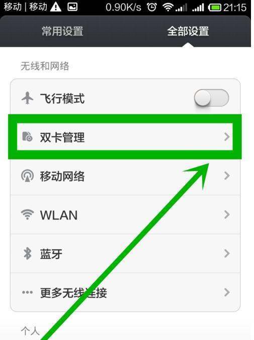 到手机的设置中,有一个要选择的提示界面,你可以在卡1和卡2之间选择。